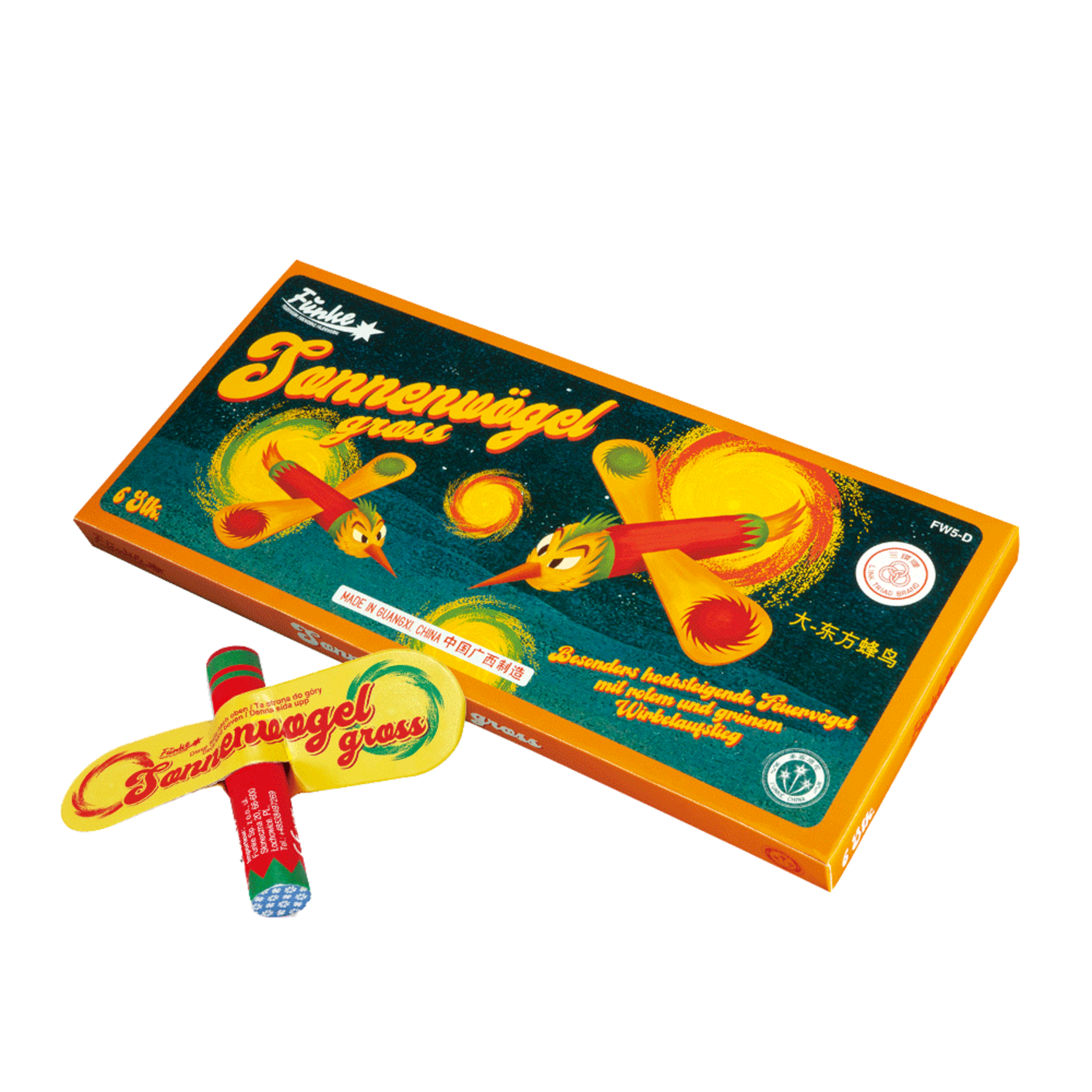 Besonders hochsteigende Feuervögel mit rotem und grünem Sonnenwirbel-Aufstieg.