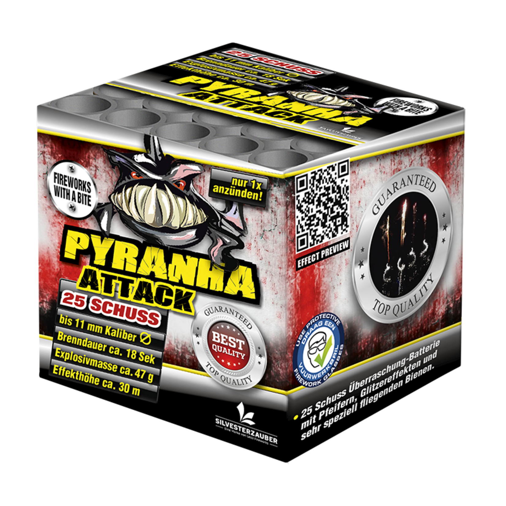 25 Schuss überraschende Batterie mit Pfeifern, Glitzereffekten und ganz besonderen fliegenden Bienen.